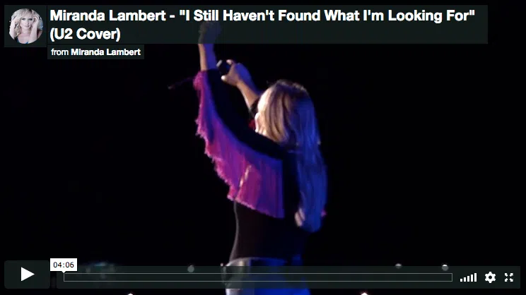 Miranda Lambert attended U2’s Joshua Tree Tour in Louisville, Ky., in June and was so moved by the experience that she’s been working a cover of “I Still Haven’t Found What I’m Looking For” into her recent sets.