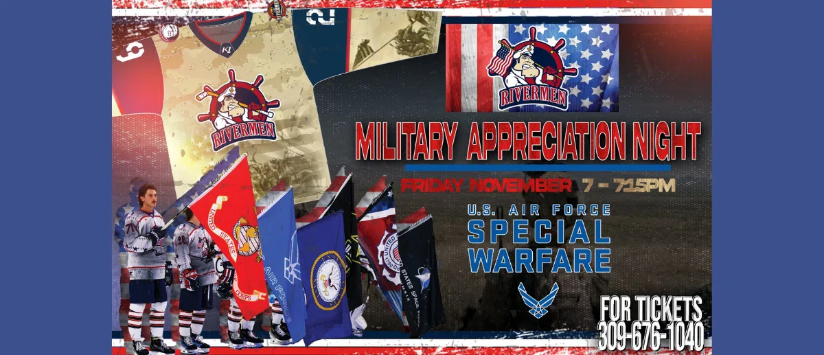 Friday Night at Carver Arena it is Military Appreciation Night with your Peoria Rivermen!